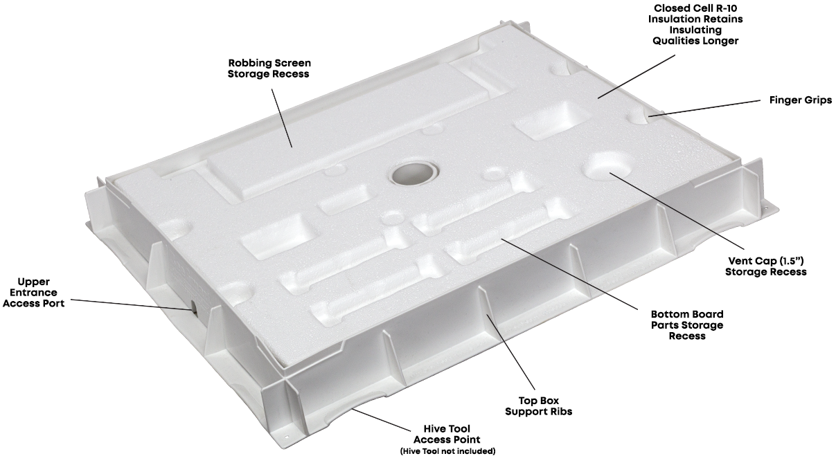 Discover the Ultimate Insulated Inner Cover with features and benefits to meet the needs of any beekeeper. Patent Pending R-10 Insulation System keeps hives cooler in the Summer and warmer in the Winter for a more controlled and natural environment.